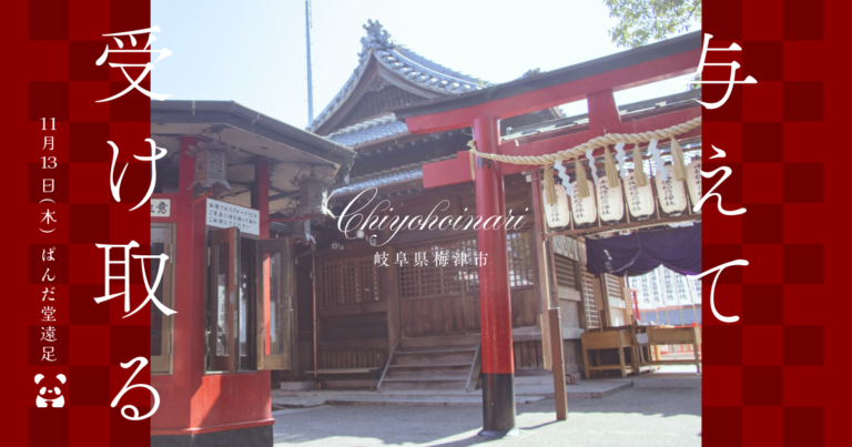 11月は『おちょぼさん』の愛称で親しまれている、岐阜県の『千代保稲荷神社』と周辺を歩いてみようと企画しております。 おちょぼさんは、京都の伏見、愛知の豊川と並ぶ、日本三大稲荷のひとつと言われており、商売繁盛、合格祈願、 … 続きを読む 11/13(木)開催!ぱんだ堂遠足~千代保稲荷神社~